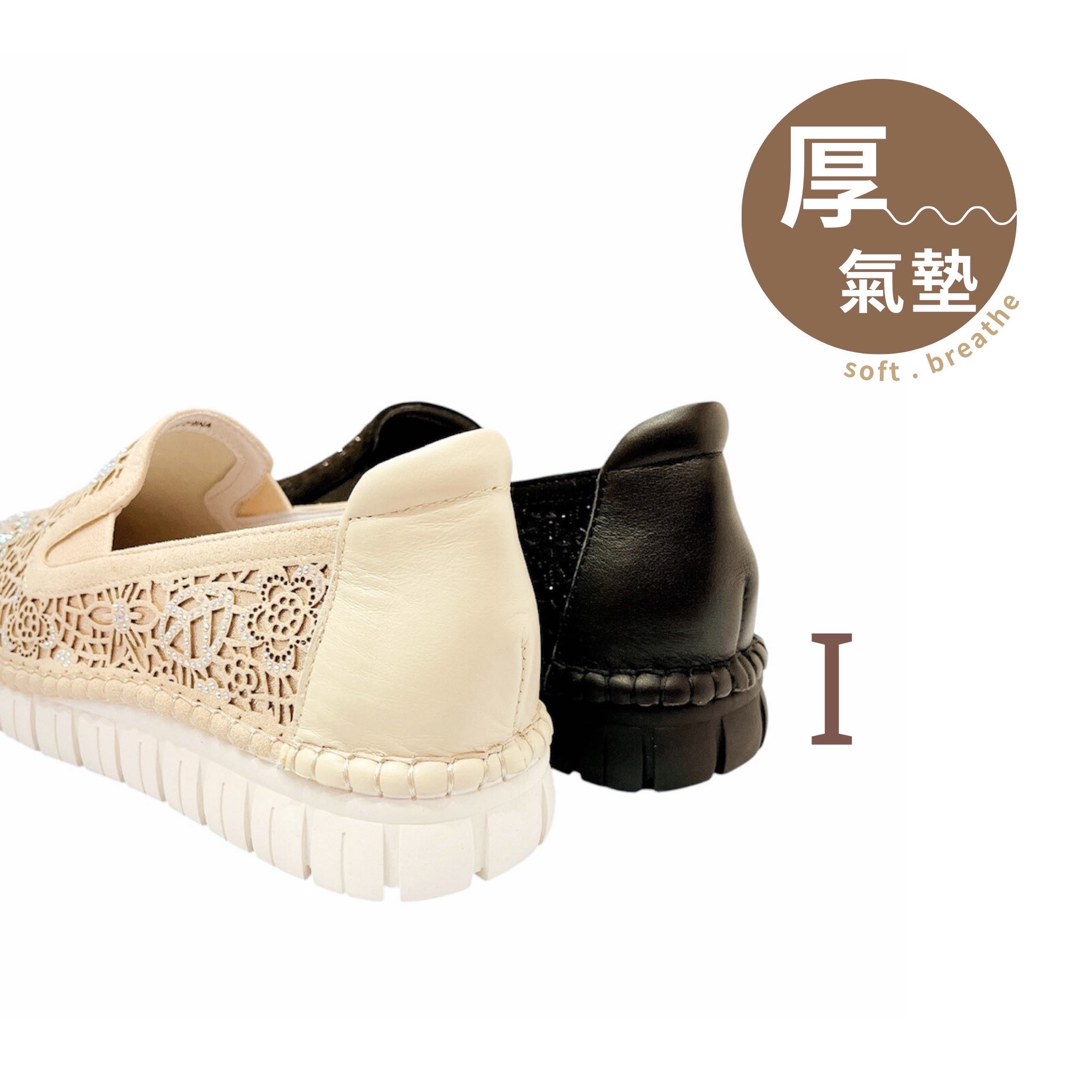 雕花透膚氣墊包鞋 金/黑